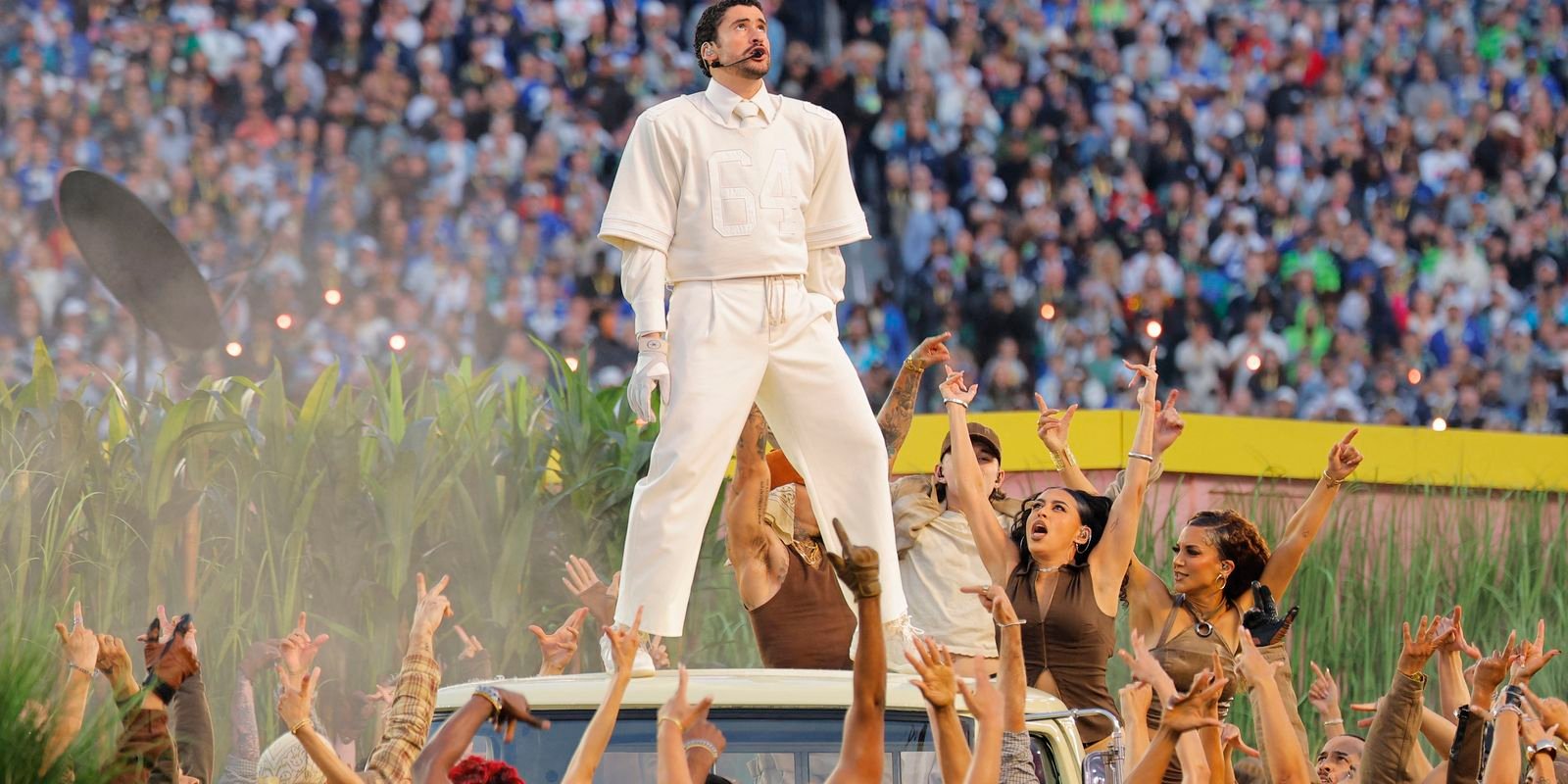 Bunny não citou diretamente Trump ou o ICE, mas todo o show trouxe o orgulho latino para o centro do Levi’s Stadium. Com todas as músicas e todas as suas falas em espanhol, o artista foi rodeado por um cenário que reproduzia uma plantação de cana-de-açucar, que já foi uma cultura forte em Porto Rico e ainda é em vários outros da região.